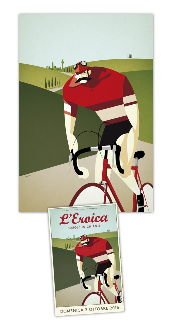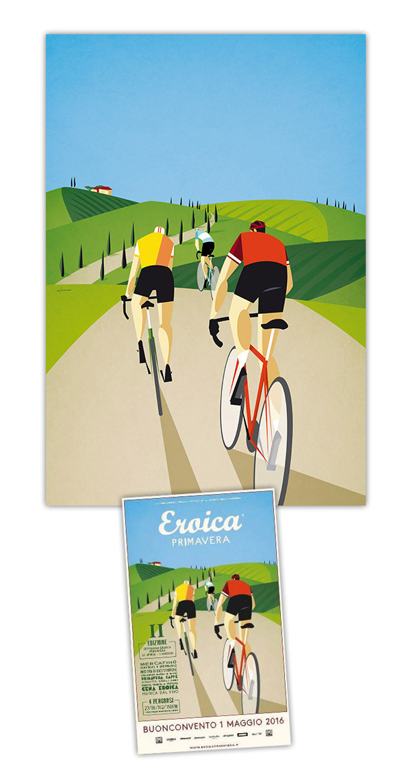 Two posters I designed for L'Eroica, for the 20th anniversary edition, and L'Eroica Primavera, two popular vintage cycling races in Tuscany.